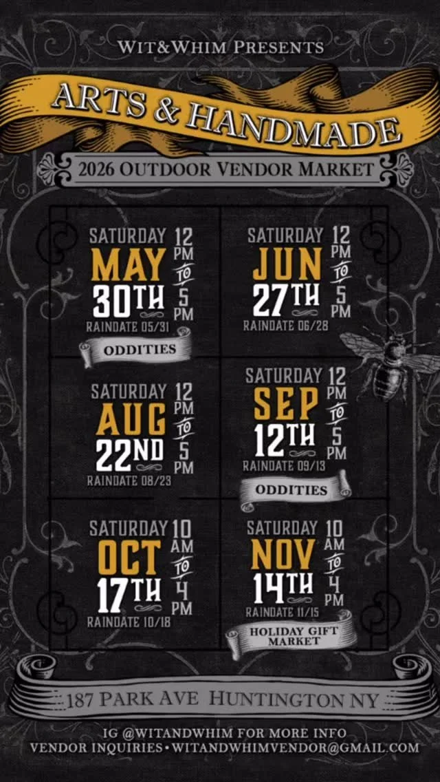 10/17: Wit & Whim Handmade Market (187 Park Ave. Huntington, New York) 10am-4pm