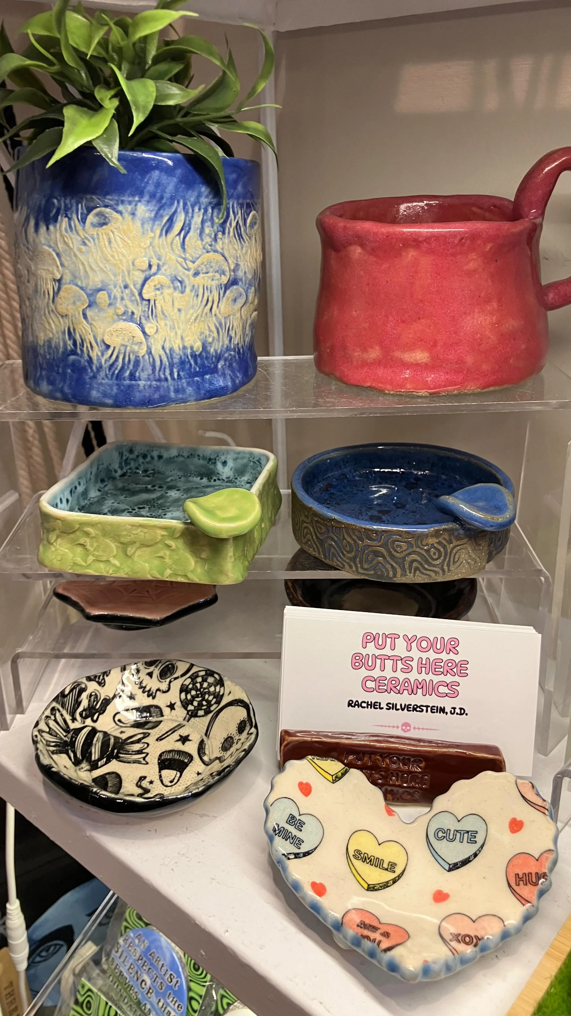 Put Your Butts Here Ceramics focuses on handmade, hand built ceramic ashtrays. There’s other cool stuff for sale, too, for all you wonderful mug and trinket collectors.